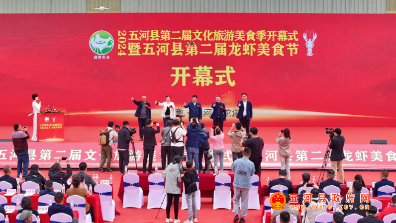 王儒利在致辞中表示,近年来,五河县围绕乡村振兴发展主旋律,依托得天独厚的水域资源和地理优势,以特色农旅、节庆活动为载体,抢抓机遇,锐意进取,出台了一系列的优惠扶持政策,推动稻渔产业发展,建设龙虾垂钓区,采摘园等稻渔种养示范区。在龙虾餐饮、垂钓经济、乡村旅游等领域走出了一条发展新路径,其中大岗村蟹田米、沱湖大渔龙虾,更是深受消费者喜爱,为打造绿色食品,建设食品安全提供了有力保障。此次举办的2024五河县第二届文化旅游美食季开幕式暨五河县第二届龙虾美食节将秉承“以虾为媒、产业发展、乡村振兴”的宗旨,诚邀大家到五河走一走、看一看,游魅力水乡、赏沱湖风光、品沱湖龙虾。