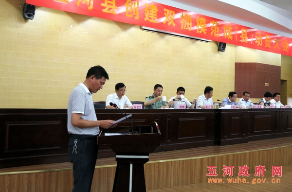会上,县委常委、县人武部部长徐俊亮宣读了《五河县争创全省双拥模范城(县)实施方案》的通知,县民政局、武警中队、国税局、城关镇就如何抓好创建工作作了表态发言。