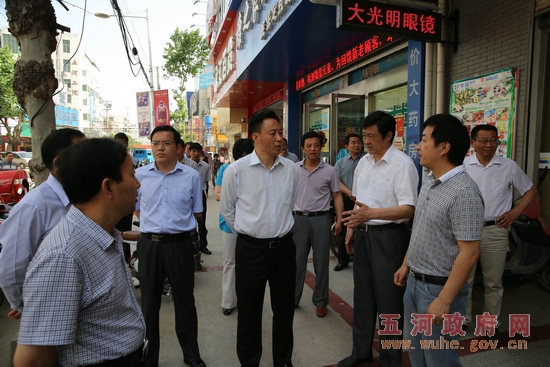 中心路华运超市处人流量较大,门前管理问题十分烦杂,常言龙等县领导在详细了解相关情况后要求:要加强经营场所门前管理,落实门前“三包”责任,要综合路段情况,完善路段管理措施,形成有序、良好的街面环境。