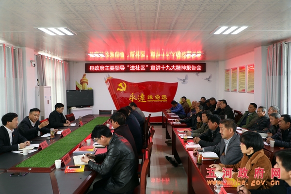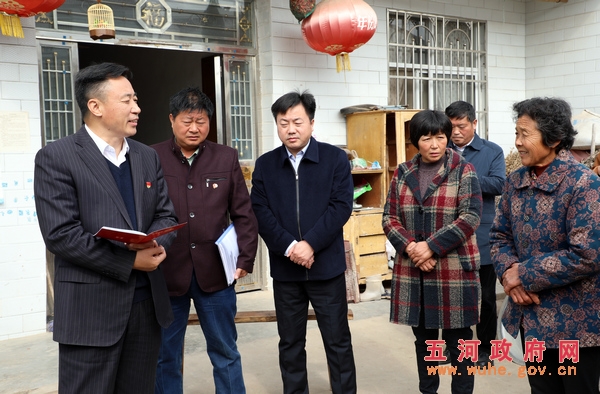 11月12日上午,县长常言龙在县政府办负责同志的陪同下,到新集镇新台居宣讲党的十九大精神,走访贫困户。