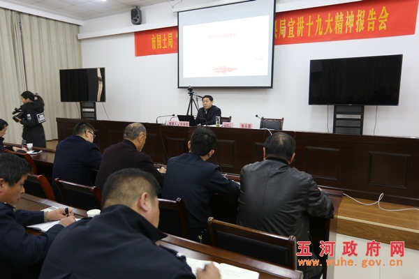 为将学习宣传贯彻党的十九大精神进一步引向深入,12月11日下午,市国土局党组书记、局长、局十九大精神宣讲团团长张来凤同志来五河县局开展“百团宣讲进基层”宣讲活动,县国土局全系统一百余人参加此次会议。